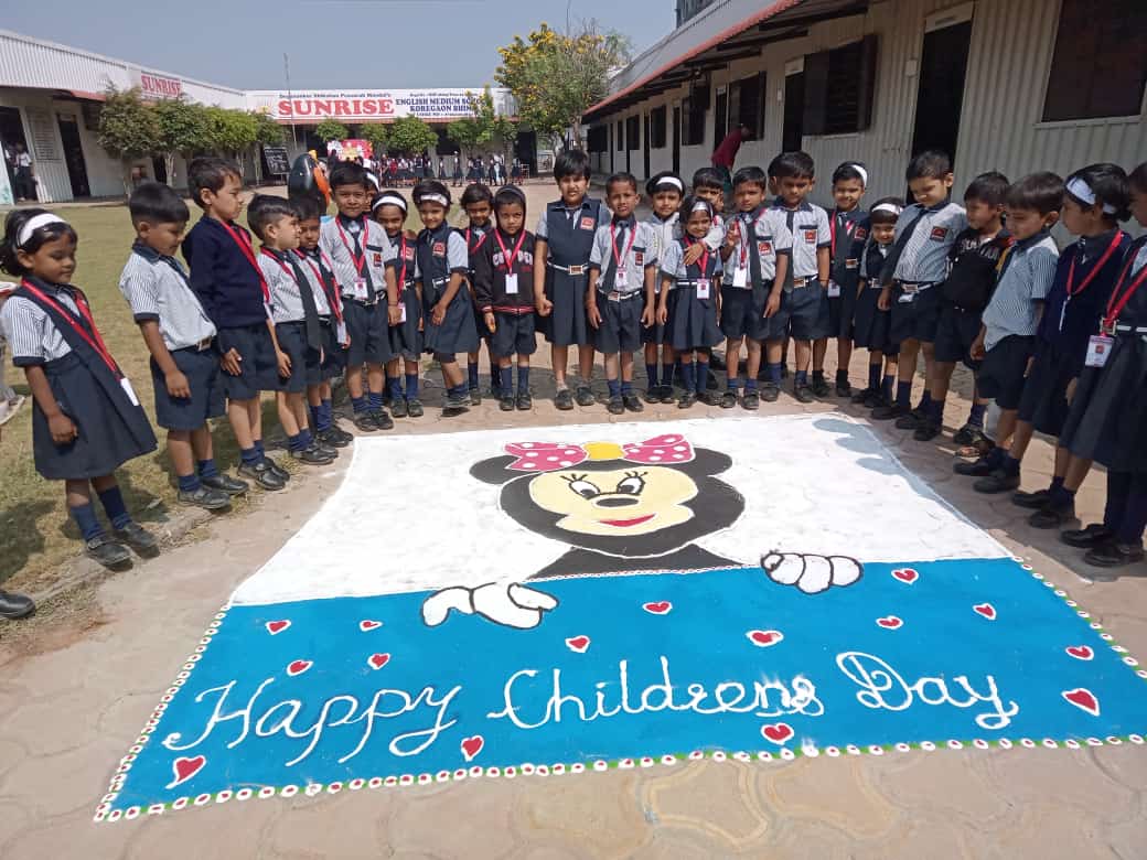कोरेगाव भीमा, ता. शिरुर येथील ज्ञानांकुर शिक्षण प्रसारक मंडळाच्या सनराईज इंग्लिश मिडीयम स्कुल मध्ये बालदिन मोठ्या उत्साहात साजरा करण्यात आला. संस्थेचे अध्यक्ष भगवान भंडारे व सचिव कांतीलाल फडतरे यांच्या हस्ते भारताचे पहिले पंतप्रधान पंडित नेहरु यांच्या प्रतिमेचे पूजन करण्यात आले.