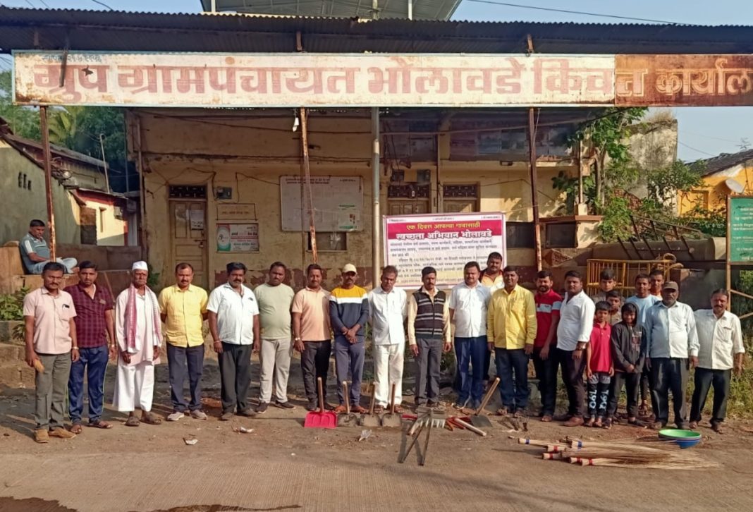 भोलावडे, ता. भोर ग्रामपंचायत मध्ये एक दिवसाचे स्वच्छता अभियान मोठ्या उत्साहात राबविण्यात आले. जागतिक शौचालय दिनाच्या निमित्ताने पुणे जिल्हा परिषदचे मुख्य कार्यकारी अधिकारी आयुष प्रसाद यांनी आयोजित केलेल्या स्वच्छता पंधरवडा अभियानाच्या टप्पा क्रमांक दोन अंतर्गत गावांमध्ये स्वच्छता ठेवण्याच्या उद्देशाने विशेष मोहीम घेण्यात आली. भोलावडे गावात या मोहिमेचा शुभारंभ ग्रामदैवत भैरवनाथ देवाच्या मंदिर परिसरापासून स्वच्छता अभियानाची सुरुवात झाली.