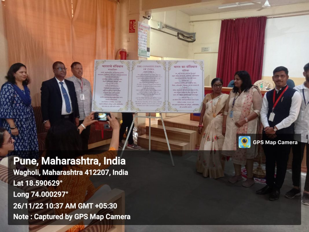 भारतीय जैन संघटनेचे कला विज्ञान व वाणिज्य महाविद्यालय, वाघोली येथे राज्यशास्त्र विभाग, ग्रंथालय, विद्यार्थी विकास मंडळ व राष्ट्रीय सेवा योजना यांच्या संयुक्त विद्यमाने संविधान दिनानिमित्त कार्यक्रमाचे आयोजन करण्यात आले होते. कार्यक्रमाला एस एस खर्डेकर इंडस्ट्रीजचे प्रमुख संतोष खर्डेकर प्रमुख पाहुणे म्हणून उपस्थित होते. दीपप्रज्वलन व संविधान प्रास्ताविक फलकाचे अनावरण मान्यवरांच्या हस्ते करण्यात आले. तदनंतर २६/११ हल्ल्यांमध्ये शहीद झालेल्या वीरांना श्रद्धांजली वाहण्यात आली.