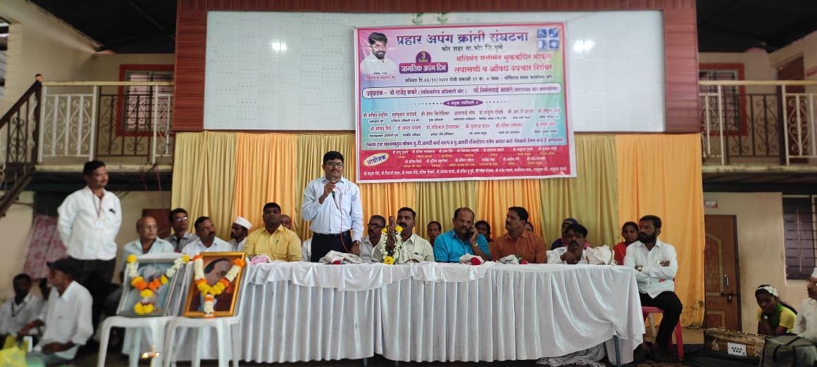 या प्रसंगी भोर तालुका प्रहार अपंग क्रांती संघटनेचे अध्यक्ष बापू कुडले,शहर अध्यक्ष सतीश शिर्के,महिला अध्यक्षा मनिषा गायकवाड,शहर अध्यक्षा संगिता बहिरट, दत्ता हिंगे, भानुदास दुधाने, विनायक मालुसरे, शांताराम खाटपे, शिवाजी बदक, महेंद्र सोनवणे, बापू धोंडे, नितीन किंद्रे, राजकुमा मोरे, नरेश जगदाळे, सुनिल पळशीकर, अशोक मोरे, दिगंबर चुनाडी, बबन शिंदे, संगिता शिवतरे, शाहिन शेख, सुजाता तनपुरे, सत्वशिला सणस, वर्षा मिंडे, रोहिणी गायकवाड, राणी शिंदे, अश्विनी पांगारकर, राजश्री धावले सह दिव्यांग बांधव व नागरीक उपस्थित होते.