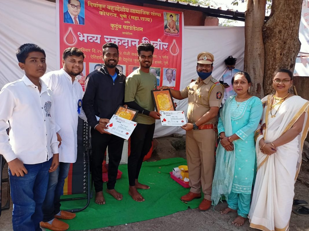 दिवांकुर बहुउद्देशीय सामाजिक सेवा संस्था (महाराष्ट्र राज्य व कुटुंब फाउंडेशन (भारत) यांच्या संयुक्त विद्यमानाने घरोघरी रक्तदाता , घरोघरी संविधान या उपक्रमांतर्गत ऐतिहासिक धम्मभुमी देहूरोड पुणे येथे स्वैच्छिक रक्तदान शिबिर संपन्न झाले.