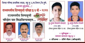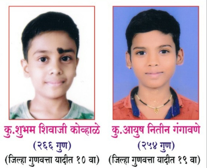 विद्यालयातील शुभम शिवाजी कोव्हाळे जिल्हा गुणवत्ता यादीत दहाव्या स्थानावर तसेच आयुष नितीन गंगावणे जिल्हा गुणवत्ता यादीत एकोणिसाव्या स्थानावर आहेत. या विद्यार्थ्यांना एकनाथ रोकडे व उत्तम भंडारे यांनी मार्गदर्शन केले. मुलांच्या या यशाबद्दल शालेय शिक्षण समितीच्या व इतरांनी शुभेच्छा दिल्या.