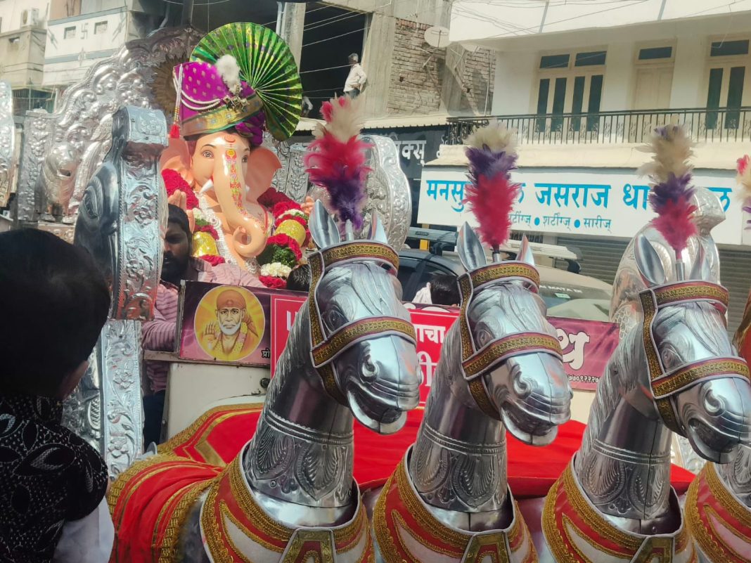 कोरोनोचे निर्बंध दुर झाल्यावर होत असणा-या गणेशजयंतीसाठी मोठ्या उत्साह गणेश मंडळाचे कार्यकर्ते व भाविका मध्ये होता. शहरातील प्रसिद्ध असणा-या हलवाई चौक गणेश मित्र मंडळाचा हलवाई गणेशाच्या दर्शनासाठी मोठ्या संख्येने भाविकांची गर्दी झाली होती. नवसाला पावणा-या अशी ख्याती असणा-या हलवाई गणेशास यंदाचा वर्षी चांदीचा हार अर्पण करण्यात आला. यापूर्वी ही हलवाई गणेशास विविध चांदीचे दागिने अर्पण करण्यात आले आहे.
