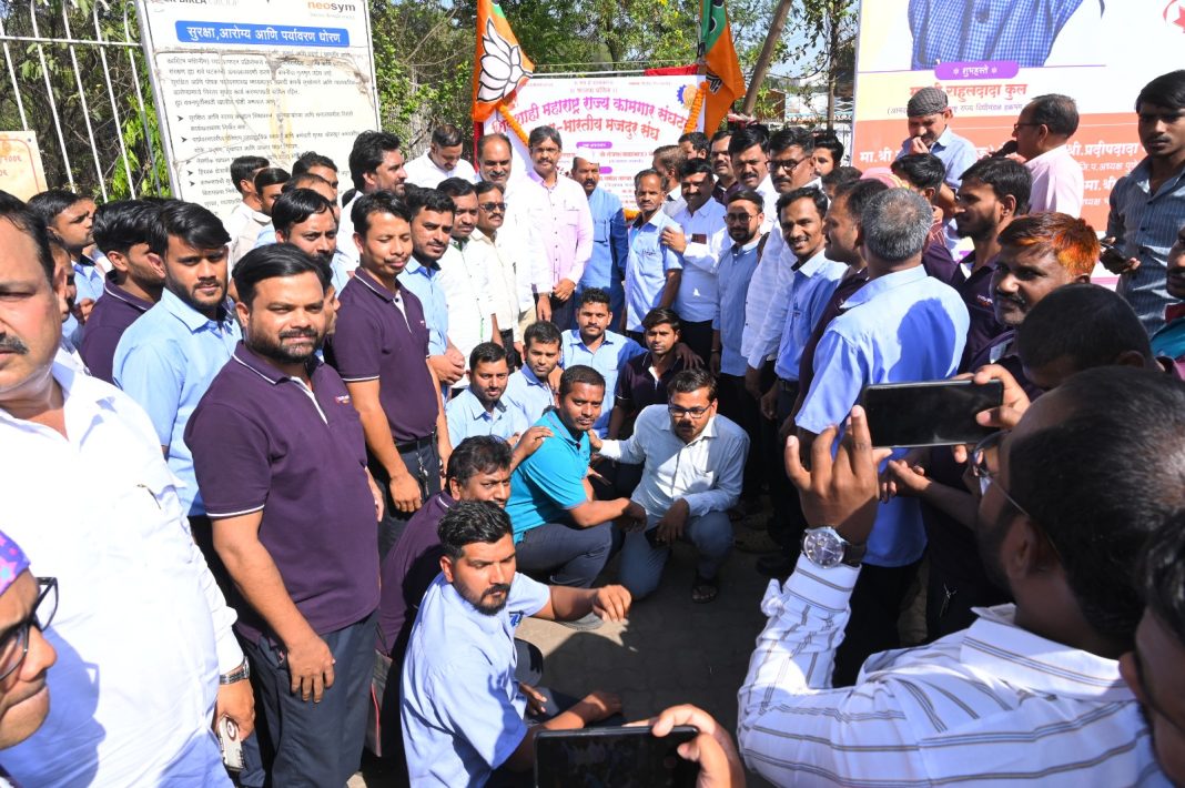 तळेगाव ढमढेरे – सणसवाडी रोडवरील एल अँड टी फाटा येथील नियोसिम इंडस्ट्री कंपनीमध्ये भारतीय जनता पार्टी प्रणित भारतीय मजदूर संघ संलग्न शिवशाही महाराष्ट्र राज्य कामगार संघटना नामफलक अनावरण सोहळा आरोग्यदूत आमदार राहुल कुल यांच्या हस्ते झाला. यावेळी पीडीसीसी बँकेचे संचालक प्रदीप कंद, भाजपा तालुकाध्यक्ष आबासाहेब सोनवणे, उद्योग आघाडीचे जिल्हाध्यक्ष संजय पाचंगे, भारतीय मजदूर संघ जिल्हाध्यक्ष अर्जुन चव्हाण, सरचिटणीस बाळासाहेब भुजबळ, सेवानिवृत्त तलाठी कैलास नरके, श्रीकांत ढमढेरे, संदीप ढमढेरे, भारतीय जनता पार्टीचे सर्व प्रमुख पदाधिकारी व कंपनी कामगार व्यवस्थापन तसेच सर्व कामगार व त्यांचे कुटुंबीय उपस्थित होते.