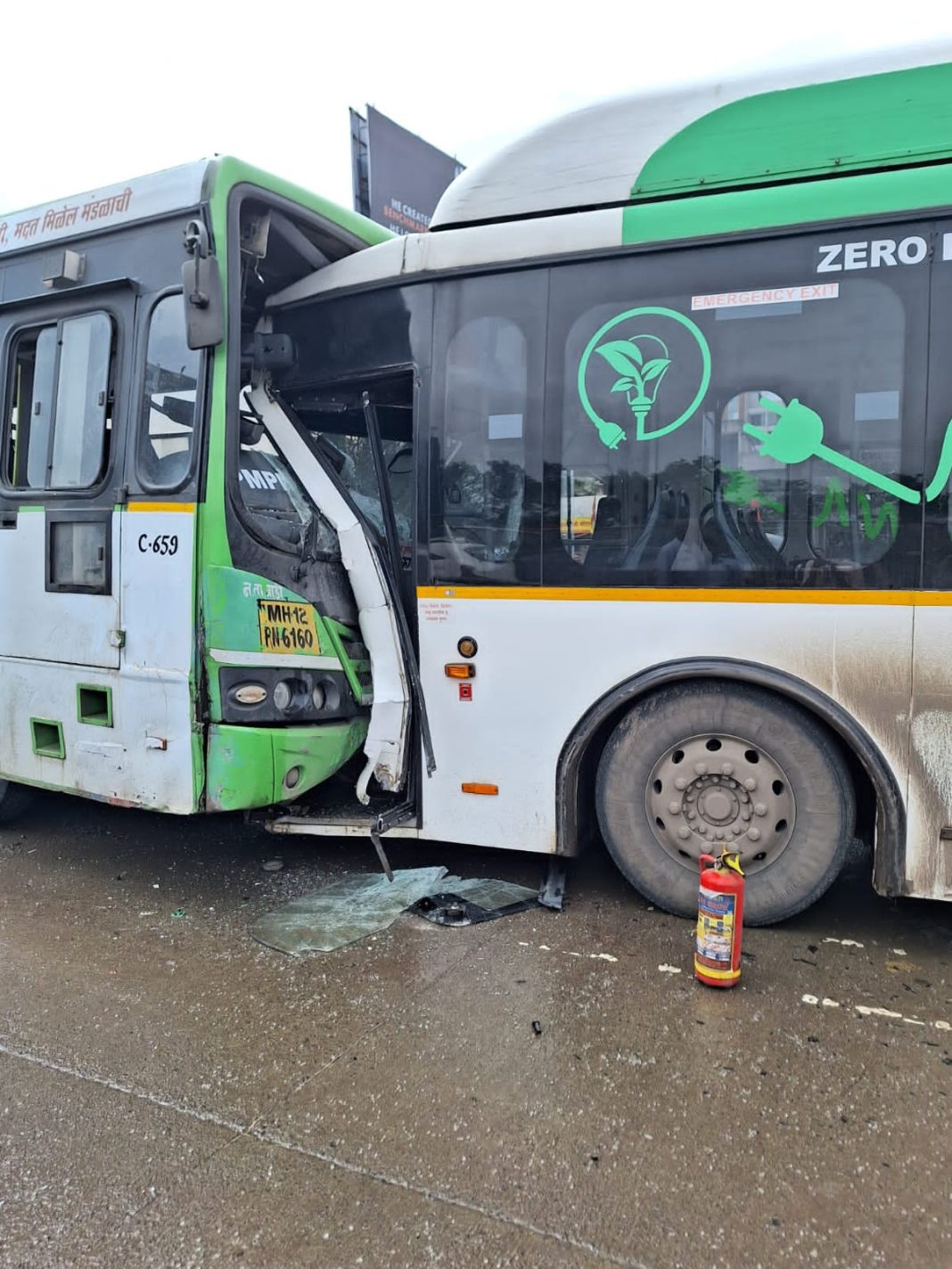 या बाबत मिळालेली प्राथमिक माहिती अशी की, वाघोली आगारातील कात्रज ते वाघोली बस वाघोली कडे येत असताना नतावाडी आगारातील तळेगाव ढमढेरे ते मनपा या पुण्याकडे जाणाऱ्या बस एकमेकांवर बीआरटी थांबाच्या परिसरात समोरासमोर सकाळी ८.४५ च्या सुमारास धडकल्या. बस चा वेग जास्त असल्याने इलेक्ट्रिक बसचा पुढील भाग अक्षरशः समोरील बस मध्ये घुसल्याने अनेक प्रवाशांना गाडीच्या काचा फोडून बाहेर काढावे लागले. तर इलेक्ट्रिक वाहन चालक गंभीर जखमी झाला आहे.