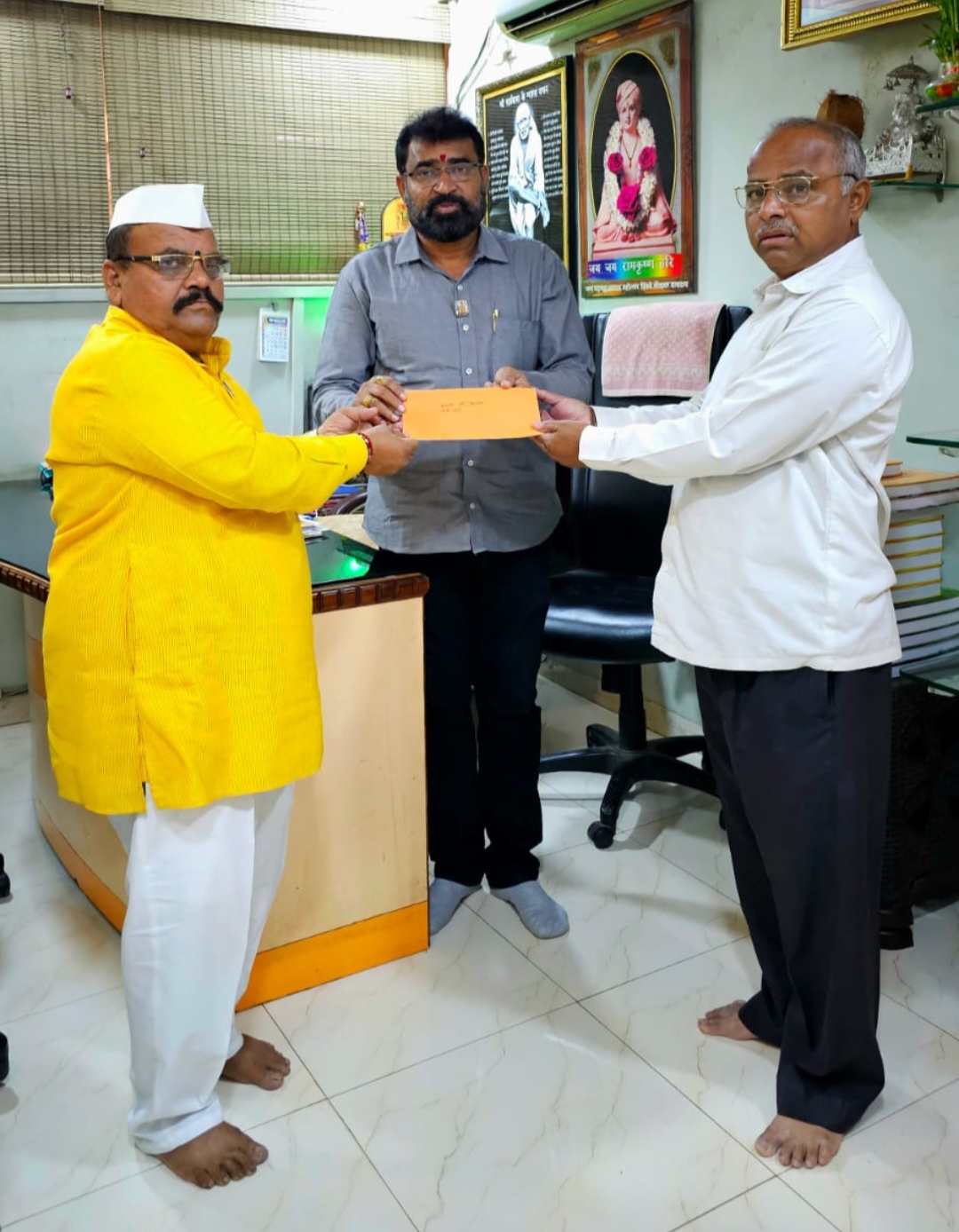 मराठवाडा जनविकास संघातर्फे कै. शकुंतला श्रीपती पवार यांच्या स्मरणार्थ वृक्षमित्र अरुण पवार व सरपंच बालाजी पवार यांच्या वतीने पिंपळे गुरव येथील श्री भैरवनाथ मंदिराच्या मखराच्या चांदीकामासाठी एक्कावन्न हजाराचा धनादेश मंदिर समितीचे अध्यक्ष राजेंद्र जगताप, पिंपळे गुरव भजनी मंडळाचे अध्यक्ष जयराम देवकर यांच्याकडे सुपूर्द करण्यात आला.