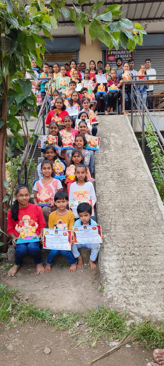 सुट्टीच्या दिवशी मोबाईल आणि टीव्हीसमोर तासानतास बसणाऱ्या मुलांनी मात्र सकाळी दहा वाजल्यापासून दुपारी तीन वाजेपर्यंत गणपती बाप्पाची मूर्ती रंगवण्यामध्ये मंत्रमुग्ध झाले होते. लहान मोठ्या 30 मुलांमुलींनी या स्पर्धेमध्ये भाग घेऊन आपले कलागुण सादर केले. मुलांनी गणपती बाप्पा च्या रंगवलेल्या व सजवलेल्या मूर्तीचे परीक्षण सूर्यवंशी व मदन हराळ पाटील यांनी केले.