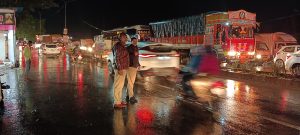 यावेळी वाहतूक कोंडी होऊ नये यासाठी शिक्रापूर पोलिसांच्या माध्यमातून उत्कृष्ट नियोजन करण्यात आले तर पोलीस उपनिरिक्षक अविनाश थोरात, पो. ह. सचिन मोरे, प्रफुल्ल सुतार व पोलीस मित्र तसेच सहकारी भर पावसात आपले कर्तव्य निभावत असल्याचे चित्र पुणे नगर महामार्गावरील प्रत्येक चौकात दिसत होते.