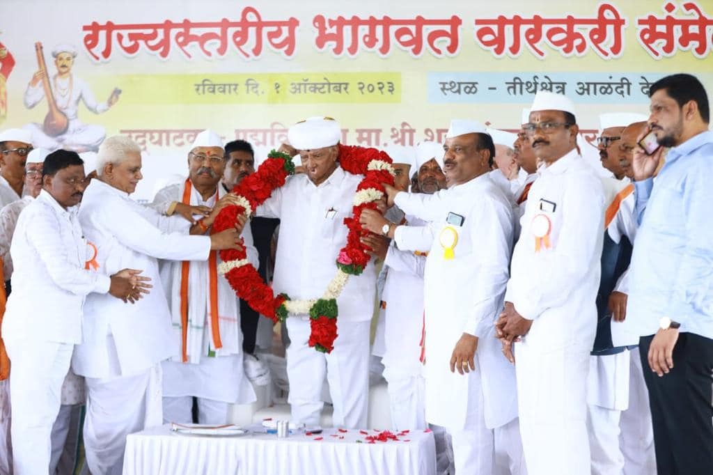 आळंदी येथे आयोजित भागवत वारकरी महासंघाचे वतीने राज्यस्तरीय वारकरी संमेलनाचे राष्ट्रवादी काँग्रेसचे अध्यक्ष शरद पवार यांच्या हस्ते उद्घाटन आणि वारकऱ्यांचा सन्मान यावेळी पवार यांच्या हस्ते करण्यात आला. यावेळी दिनकर शास्त्री भुकेले अध्यक्षस्थानी होते.