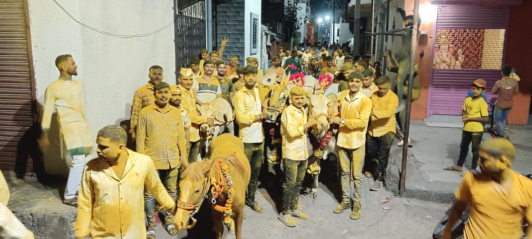 वर्षभर शेतकरी राजाला साथ देणाऱ्या बैलांना सकाळी लवकर भिमा नदीच्या पात्रात धुवून सजविण्यासाठी बच्चे कंपनीने गर्दी केल्याचे चित्र होते. दुपारी सुरु झालेली बैलांची मिरवणूक रात्री उशिरा पर्यंत निर्विघ्न सुरू होती.