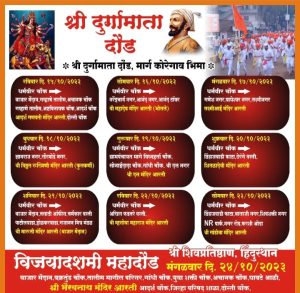 दुर्गादौड चे मार्गावरील प्रत्येक चौकात मोठ्या उत्साहात स्वागत करण्यात आले. तर ध्वज धारकाचे औषण करण्यात आले. यावेळी ध्येय मंत्र, प्रेरणा मंत्र, देशभक्ती पर गीते, देवीची गीते गाण्यात आली. सर्वांनी डोक्यावर गांधी टोपी घालत नागरिकांनी या दुर्गदौडेत सहभागी होण्याचे आवाहन करण्यात आले.