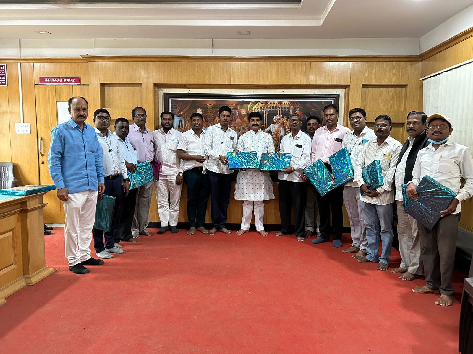 शिक्रापूर, ता. शिरुर ग्रामपंचायत कार्यालय येथे सरपंच रमेश गडदे यांच्या वैयक्तिक निधीतून पत्रकारांना दिवाळी निमित्ताने मिठाई वाटप कार्यक्रमात सरपंच रमेश गडदे बोलत होते.
