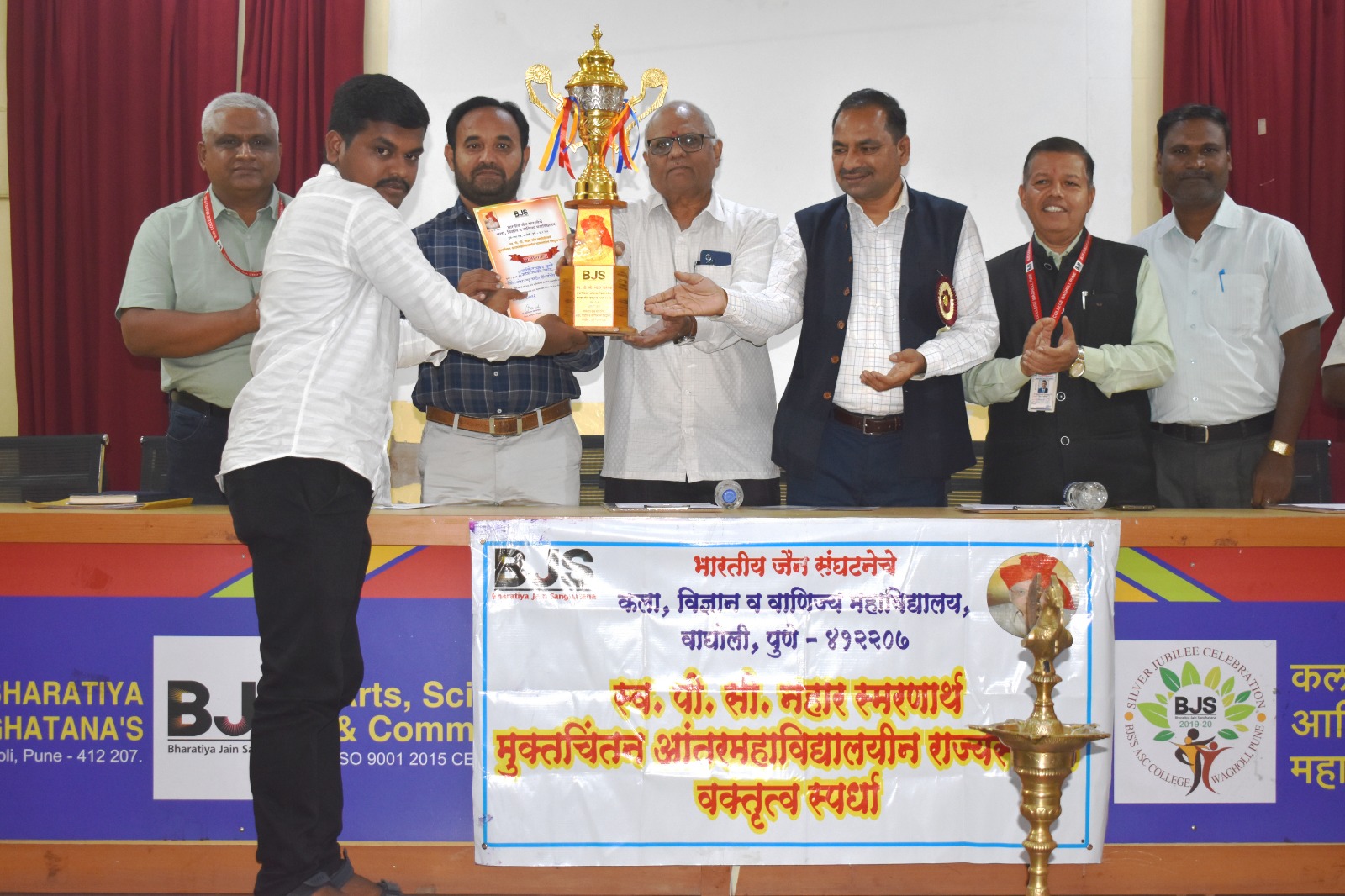 स्व.पी.सी.नाहर यांच्या स्मरणार्थ बी.जे.एस महाविद्यालयात आयोजित केलेल्या राज्यस्तरीय वक्तृत्व स्पर्धेत न्यू आर्ट्स कॉमर्स अँड सायन्स कॉलेज अहमदनगर महाविद्यालयाचा संघ विजेता ठरला. स्पर्धेचे उद्घाटन अण्णासाहेब मगर महाविद्यालयाच्या प्रा. डॉ. नानासाहेब झगडे यांच्या हस्ते झाले. याप्रसंगी प्रकल्प व्यवस्थापक सुरेश साळुंके, स्वागताध्यक्ष तर अध्यक्षस्थानी महाविद्यालयाचे प्राचार्य डॉ. संजय गायकवाड उपस्थित होते.