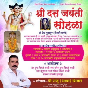 तरी दत्त जयंती महोत्सवाच्या या कार्यक्रमाला पंचक्रोशीतील तमाम नागरिकांनी उपस्थित रहावे असे आवाहन मंडळाच्या वतीने करण्यात आले आहे