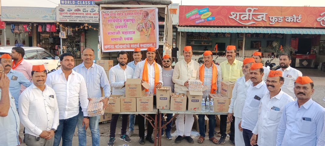 सकल मराठा समाजाला आरक्षण मिळावे यासाठी लढणाऱ्या मराठा संघर्ष योद्धा मनोज जरांगे पाटील व मराठा आरक्षणाला समर्थन देण्यासाठी पूर्व हवेलीतील श्री क्षेत्र तुळापूर येथील ग्रामस्थांच्या वतीने तुळापूर फाटा येथे अल्पोपराची सोय करण्यात आली होती. यावेळी पिण्याचे पाणी, बिस्किटे आदीचा महामार्गावरून मुंबईच्या दिशेने कुछ करणाऱ्या असंख्य मराठा बांधवांनी लाभ घेतला.