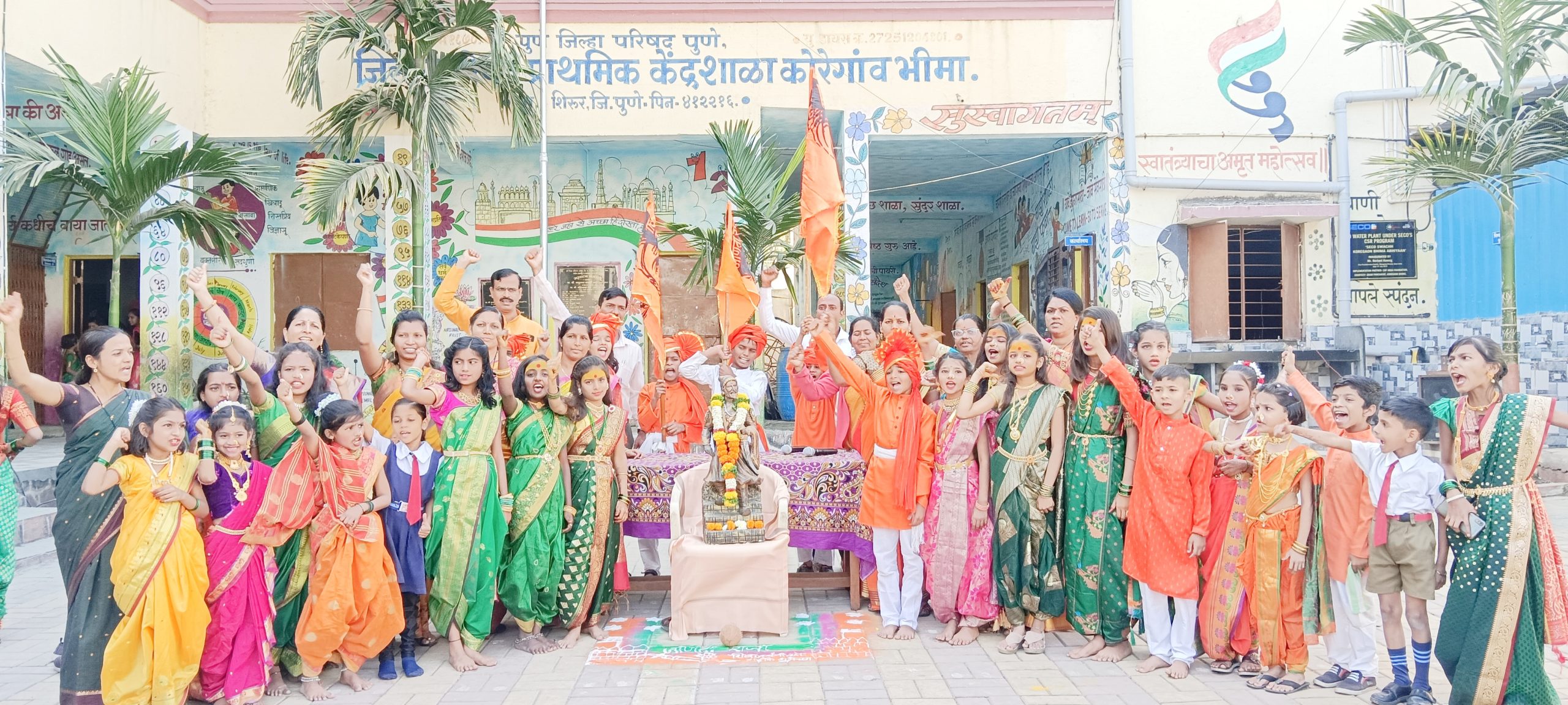 जय जिजाऊ – जय शिवराय च्या जयघोषात आणि शिवगर्जनेच्या निनादात कोरेगाव भिमा, ता. शिरूर येथील जिल्हा परिषद प्राथमिक केंद्र शाळेत छत्रपती शिवाजी महाराज यांची जयंती मोठ्या उत्साहात साजरी करण्यात आली.