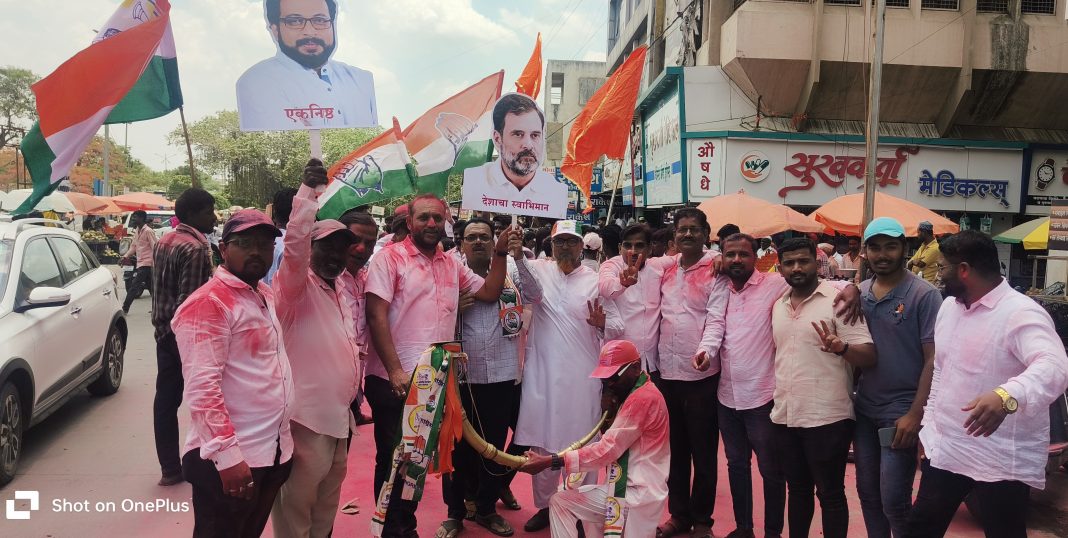 शिरुर लोकसभा मतदार संघातून महाविकास आघाडीचे उमेदवार खासदार डॉ. अमोल कोल्हे यांनी मतांची निर्णायक आघाडी घेतल्यानंतर महाविकास आघाडीच्या कार्यकर्त्यानी गुलाल उधळून व फटाके वाजवून आनंद साजरा केला.