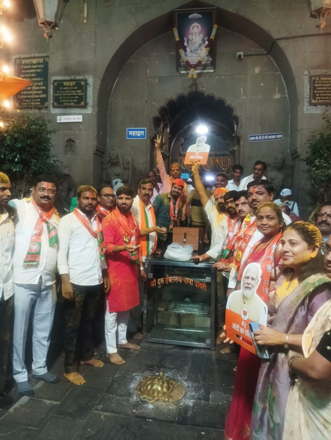 यावेळी माऊली मंदिर समोरील महाद्वार प्रांगणात कार्यकर्ते, पदाधिकारी यांनी राष्ट्रपती भवनात हा शपथविधी सोहळा पार पडला. त्याचे थेट प्रक्षेपण करीत पंतप्रधान नरेंद्र मोदी यांच्यासह मंत्रिमंडळातील मंत्र्यांना दिलेली शपथ सोहळा पाहत आनंद व्यक्त करीत जल्लोष केला.