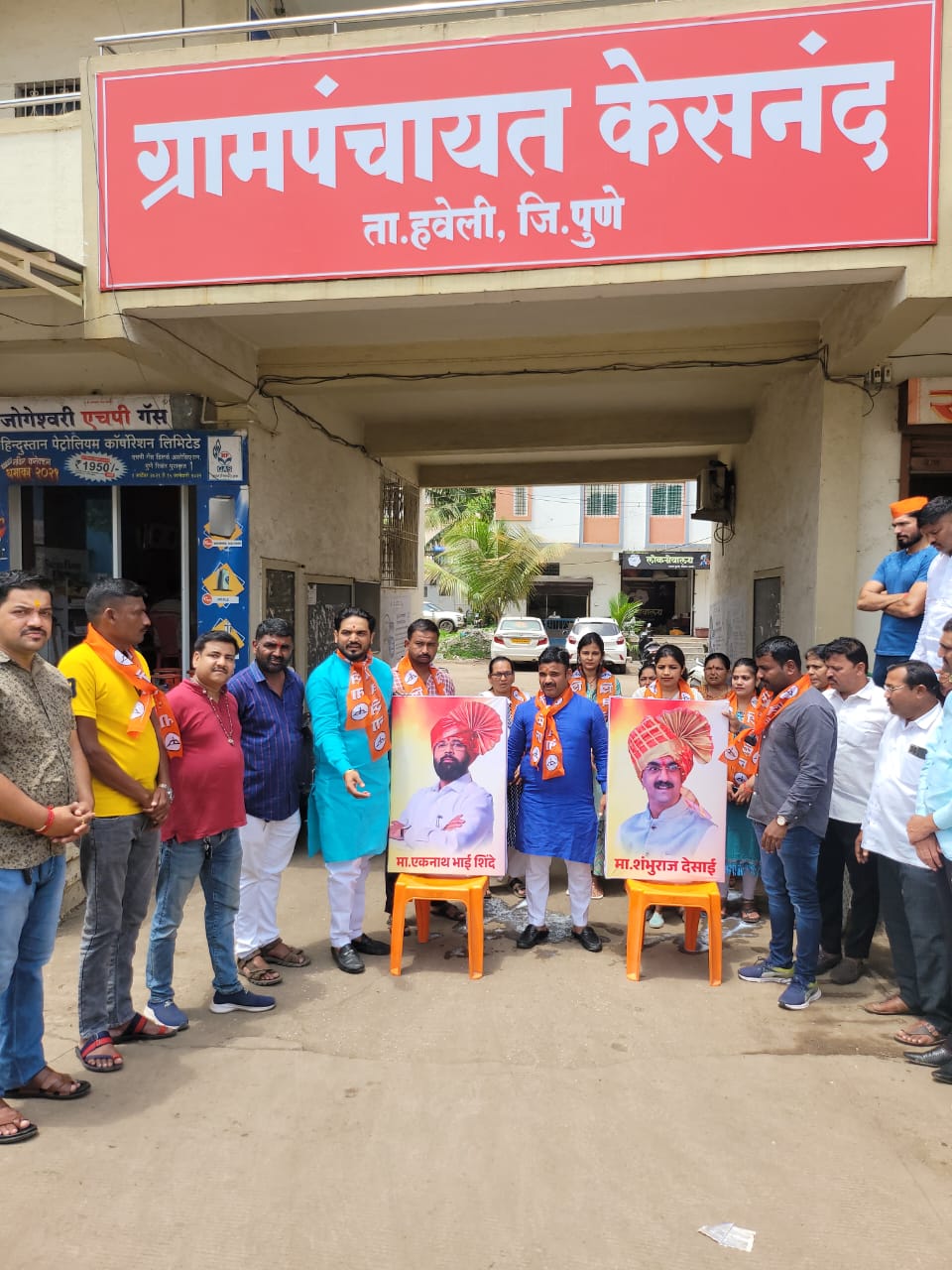 केसनंद या.हवेली येथे युवासेना पुणे जिल्हाप्रमुख गणेश सातव पाटील यांच्या वाढदिवसाचे औचित्य साधत मुख्यमंत्री एकनाथ शिंदे व उत्पादन शुल्क विभाग मंत्री शंभूराज देसाई यांचा दुग्धाभिषेक गणेश सातव पाटील मित्र परिवार व केसनंदचे सरपंच, प्रमुख व युवा सेना मित्र परिवाराच्या वतीने करण्यात आला.