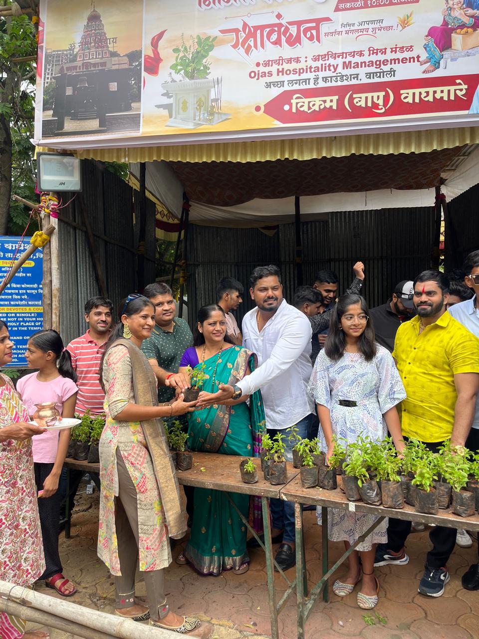 रक्षाबंधन व तिसऱ्या श्रावणी सोमवार निमित्त वाघोली येथील वाघेश्वर मंदिरात दर्शनासाठी आलेल्या भाविकांना अष्टविनायक मित्र मंडळाच्या वतीने तीन हजार तीनशे तेहतीस तुळशी रोपांचे वाटप करण्यात आले.