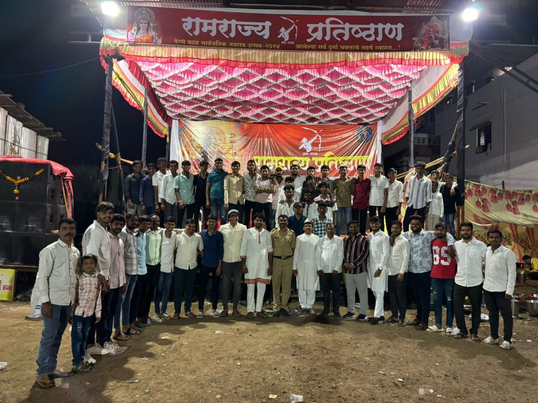 पेरणे फाटा, ता. हवेली येथील रामराज्य प्रतिष्ठानच्या वतीने नवरात्र उत्सव मोठ्या जल्लोषात वेगवेगळे उपक्रम राबवून साजरा करण्यात आला. यावेळी घटस्थापना ते विजयादशमी व कोजागिरी पौर्णिमेनिमित्त विविध सामाजिक उपक्रम राबवित नवरात्री उत्सवाची सांगता करण्यात आली असल्याचे प्रतिष्ठानचे अध्यक्ष फिरोज शेख आणि संस्थापक हेमंत माने यांनी आपली लोकशाही शी बोलताना सांगितले.