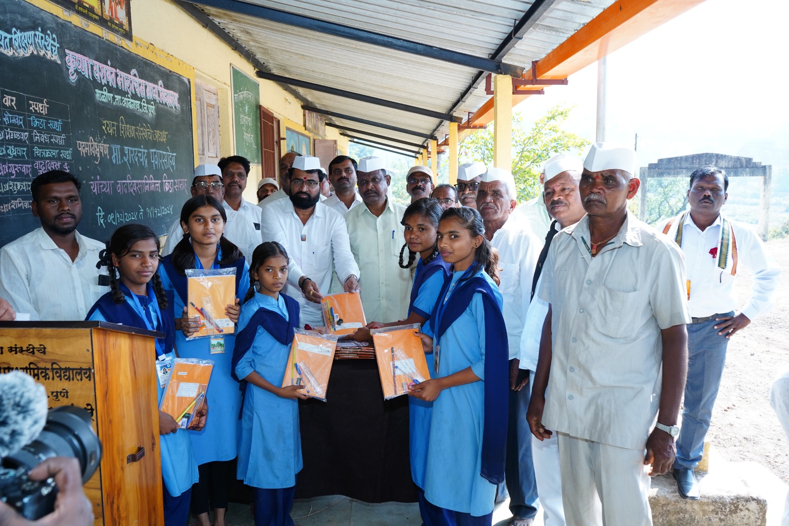 माळीन, फुलवाडे व बोरघर (ता. आंबेगाव) येथील पहिली ते दहावीपर्यंतच्या २ हजार विद्यार्थ्याना वह्या, पेन, पेन्सिल, कापडी पिशवी, कॅलेंडर, परीक्षा पॅड, भारताचे संविधान तसेच दहावीच्या विद्यार्थ्यांना २१ अपेक्षित संच आदी शालेय साहित्याचे वाटप करण्यात