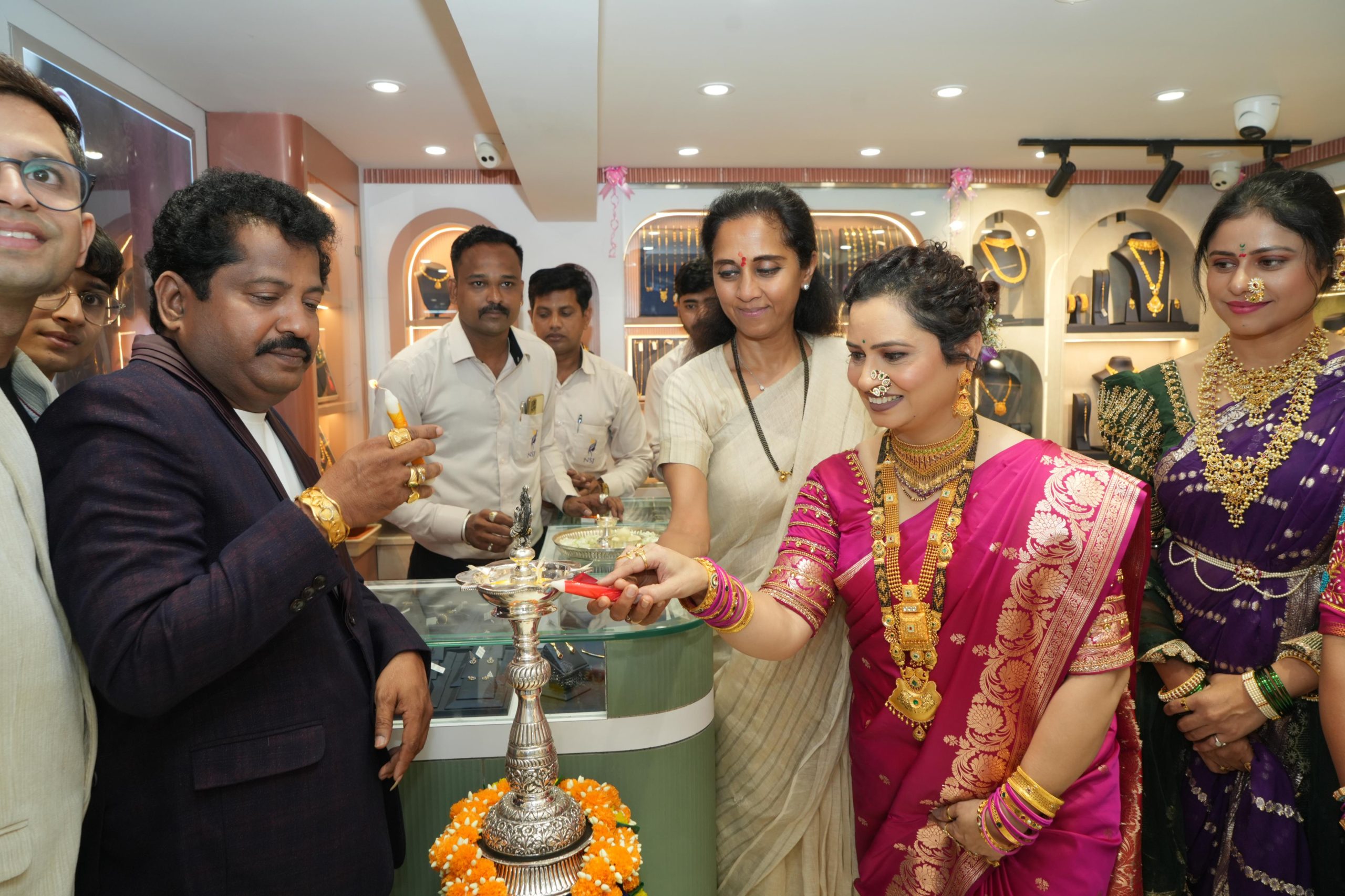 कात्रज संतोष नगर येथील ” न्यू साइनकर ज्वेलर्स” च्या नवीन नूतनीकरण केलेल्या दालनाचे उद्घाटन खासदार सुप्रियाताई सुळे यांच्या हस्ते करण्यात आले. यावेळी कैलास साईनकर यांनी त्यांचा सत्कार केला.