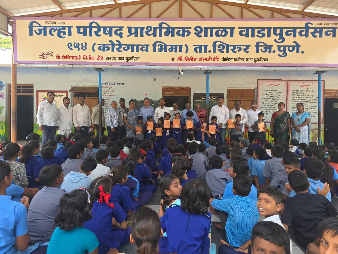 कर्मवीर विद्यालय वाडा माजी विद्यार्थी संघातर्फे शिरूर तालुक्यातील जिल्हा परिषद शाळा वाडा पुनर्वसन येथे गरीब व गरजू मुलांना वह्या व शैक्षणिक साहित्याचे वाटप काल करण्यात आले. त्यामध्ये पाचशे वाह्या, पेन्सिल, पेन गरजू विद्यार्थ्यांना वाटप करण्यात आले.