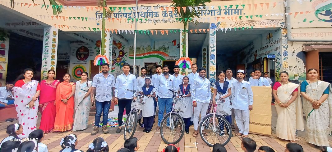 पुणे जिल्हा परिषद मुख्य कार्यकारी अधिकारी गजानन पाटील यांच्या संकल्पनेतून साकारत असलेला “सायकल बँक एक सामाजिक चळवळ” उपक्रमाचे अंतर्गत जिल्हा परिषद प्राथमिक केंद्रशाळा कोरेगांव भिमा येथील गरजू विद्यार्थिनीला सुवर्णयुग युवा प्रतिष्ठान चे माध्यमातून सायकल चे वाटप करण्यात आले.
