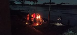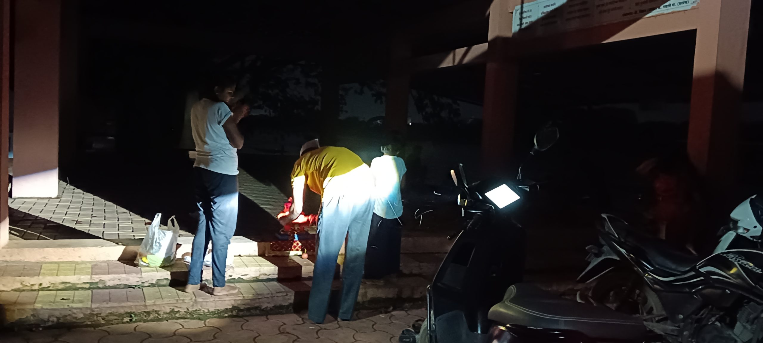 नदी पात्रात च्या परिसरात अवघ्या दोनच स्ट्रीट लाईट सुरू असल्याने अशा अंधारात अनेक भक्तांना आपल्या वाहनांचे लाईट सुरु करून आरती म्हणण्याची वेळ आली आहे.