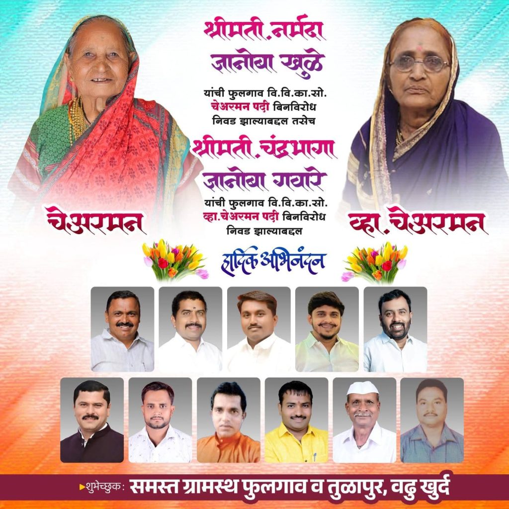 फुलगाव विविध कार्यकारी विकास सोसायटी च्या चेअरमन पदी नुकतीच नर्मदाबाई ज्ञानोबा खुळे यांची नुकतीच बिनविरोध निवड करण्यात आली. निवडणूक निर्णय अधिकारी म्हणून संतोष तळपे यांनी काम पाहिले.