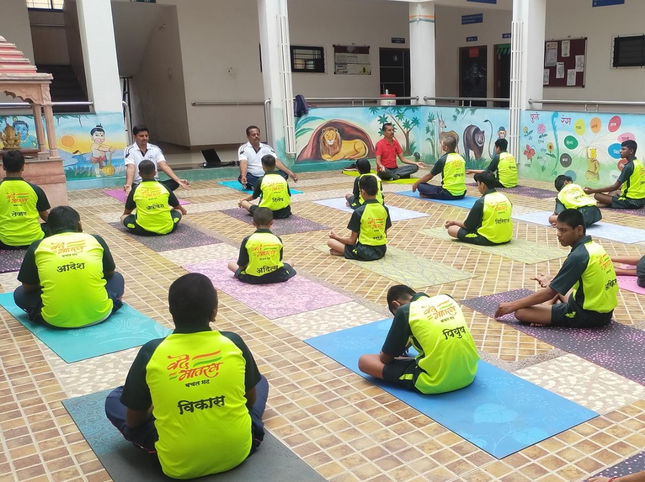 प्रार्थना, पुरक हालचाली, मानेचे व्यायाम, दंडस्थितील आसने त्यामध्ये ताडासन, वृक्षासन, पादहस्तासन, अर्धचक्रासन, ञिकोणासन, तर बैठक स्थितीतील आसनांमध्ये दंडासन, भद्रासन, वज्रासन, उष्ट्रासन, शशांकसन, वक्रासन, पोटावर झोपून करायची आसनांमध्ये मकरासन, भुजंगासन, शलासन, इत्यादी आसने त्याचबरोबर कपालभाती व प्राणायामामध्ये नाडीशोधन प्राणायम, अनुलोम विलोम प्राणायम इत्यादी नंतर शांतीपाठाने समारोप करण्यात आला. सर्व विशेष विद्यार्थ्यांनी मोठ्या उत्साहात सहभाग घेतला.