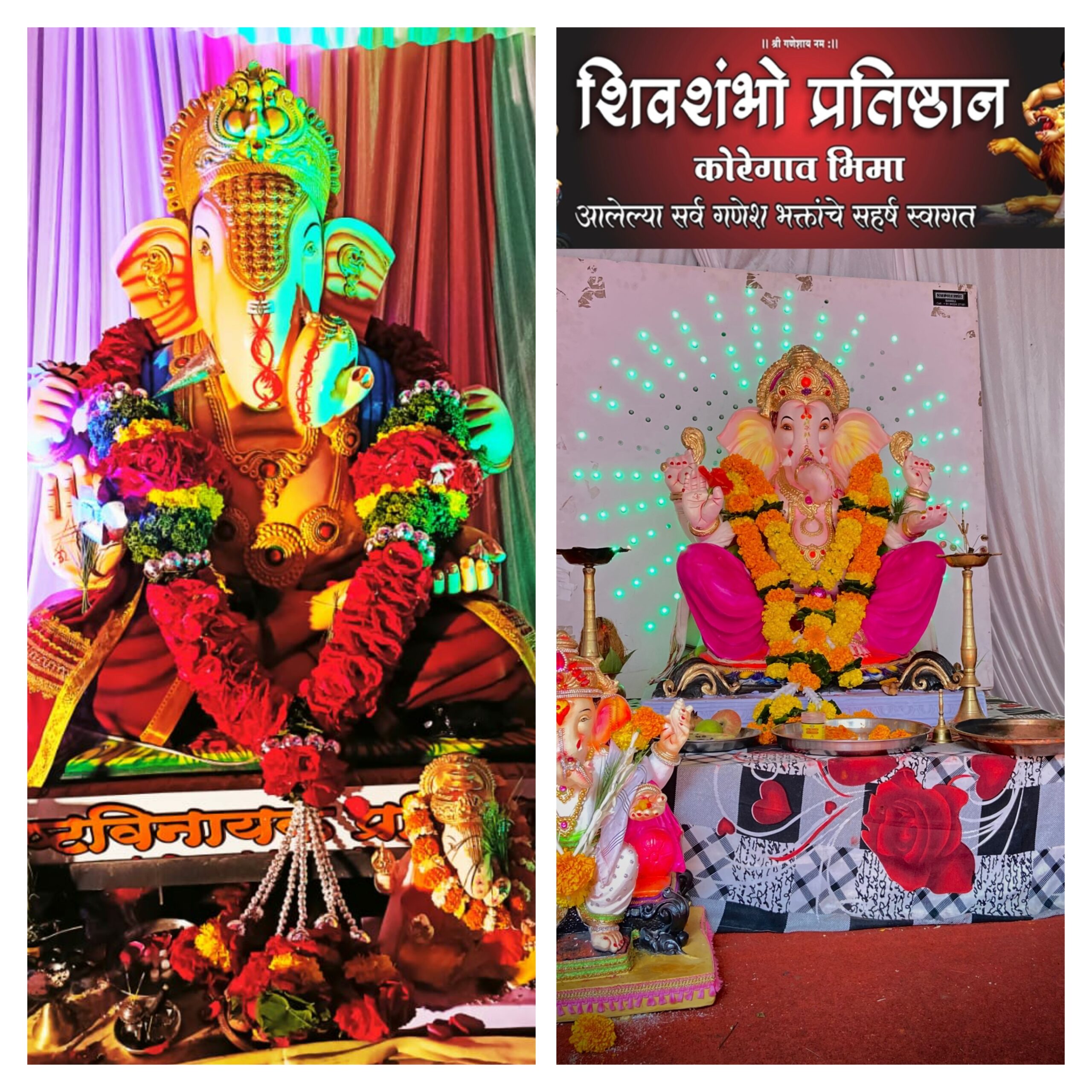 शिवशंभो प्रतिष्ठाण, कोरेगाव भीमा (वढू रोड), या ठिकाणी मागील 14 वर्षांपासून मोठ्या प्रमाणात सार्वजनिक गणेशोत्सव व विविध उपक्रम दरवर्षी साजरे करण्यात येतात. यंदाचे वर्षी दोन वर्षांच्या कोरोना महामारी नंतर तब्बल 4 फूट उंच आकर्षक गणेशमूर्ती सभामंडपात विराजमान करण्यात आली. तसेच मंडळातील सर्व सभासद, महिला व मुलांसाठी संगीतखुर्ची, मटका फोड, रांगोळी आदी स्पर्धांचे आयोजन करण्यात आले.