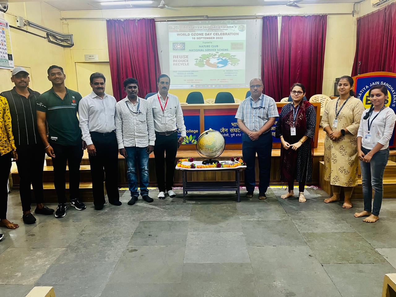 भारतीय जैन संघटनेचे कला विज्ञान व वाणिज्य महाविद्यालय वाघोली येथे निसर्ग मंडळ व राष्ट्रीय सेवा योजना यांच्या संयुक्त विद्यमाने “जागतिक ओझोन दिवस” साजरा करण्यात आला. या कार्यक्रमाचे प्रमुख पाहुणे सावित्रीबाई फुले पुणे विद्यापीठ भूगोल अभ्यास मंडळाचे अध्यक्ष डॉ. ज्योतीराम मोरे यांनी विद्यार्थ्यांना बहुमोल मार्गदर्शन केले.