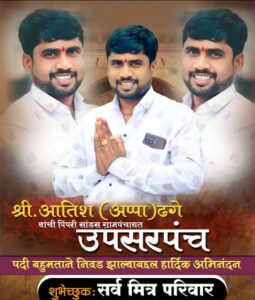 यावेळी सरपंच, उपसरपंच सर्व ग्रामपंचायत सदस्य, विविध कार्यकारी विकास सोसायटीचे चेअरमन, व्हा. चेअरमन, संचालक, आजी माजी सरपंच, उपसरपंच, सदस्य, चेअरमन, संचालक, तरूण मित्र परिवार, ग्रामस्थ आणि आप्तेष्ट मोठ्या संख्येने उपस्थित होते. निवडीनंतर ढगे यांचा गुलालाची उधळण करत सत्कार करण्यात आला. गावाच्या विकासासाठी विविध उपक्रम गावात राबविण्यात येणार असल्याचे यावेळी नवनिर्वाचित उपसरपंच आतिष ढगे यांनी सांगितले.