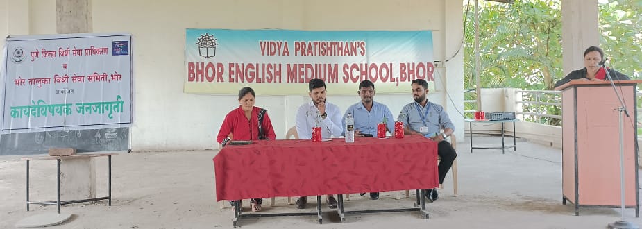 विद्या प्रतिष्ठान संचलित शारदा इंग्लिश मिडीयम स्कूल भोर, ता.भोर मधील विद्यार्थ्यांना पुणे जिल्हा विधी सेवा प्राधिकरण व भोर तालुका विधी सेवा समिती, भोर आयोजित कायदेविषयक जनजागृती करून मार्गदर्शन केले.