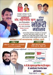 गरजू बेरोजगार युवक-युवतींनी या उपलब्ध होणाऱ्या रोजगार संधींचा लाभ घ्यावा, असे आवाहन मुख्य संयोजक तथा शिवकृपा डेव्हलपर्स संस्थापक तानाजी केकाण यांनी केले आहे. इच्छुकांना नाव नोंदणीसाठी https://forms.gl/322s6HkEakcFbiVR9 या लिंकवर आपली माहिती भरावी अथवा अधिक माहितीसाठी 9822218121 या नंबरवर संपर्क साधावा.